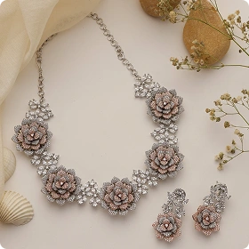Aurora Rose CZ Choker Necklace Set with Earrings