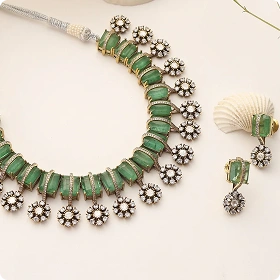 Nivara Green Polki Kundan Necklace Set (With Earrings)