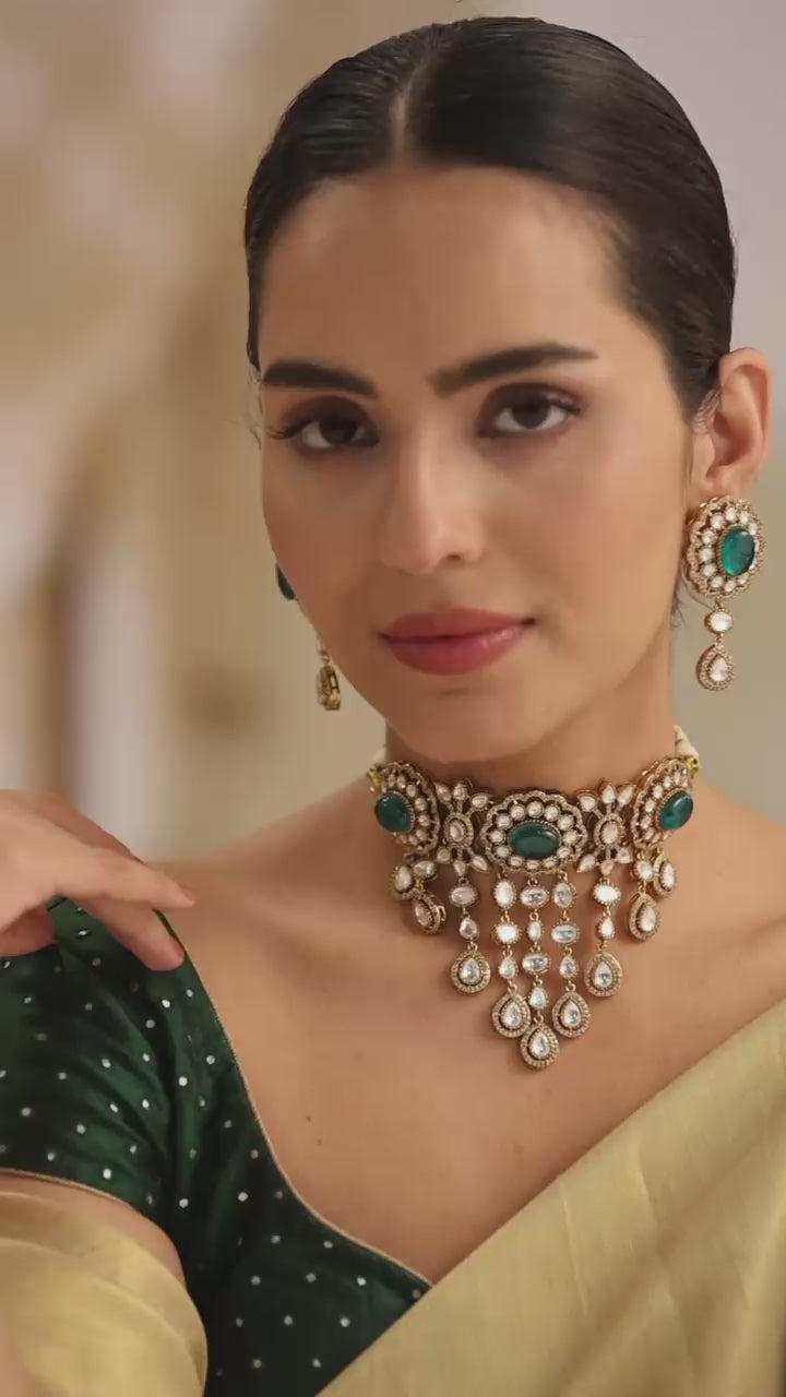Vamika Green Mossonite Kundan Choker Necklace Set