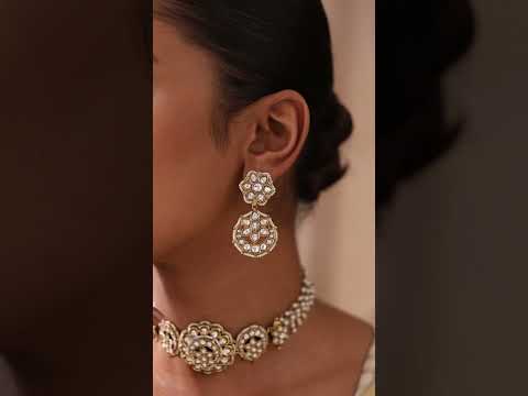 These are vintage-inspired pieces crafted with traditional techniques like Kundan and Polki stone-setting, featuring antique gold-plated finishes that evoke the charm of heirloom Indian antique jewellery.