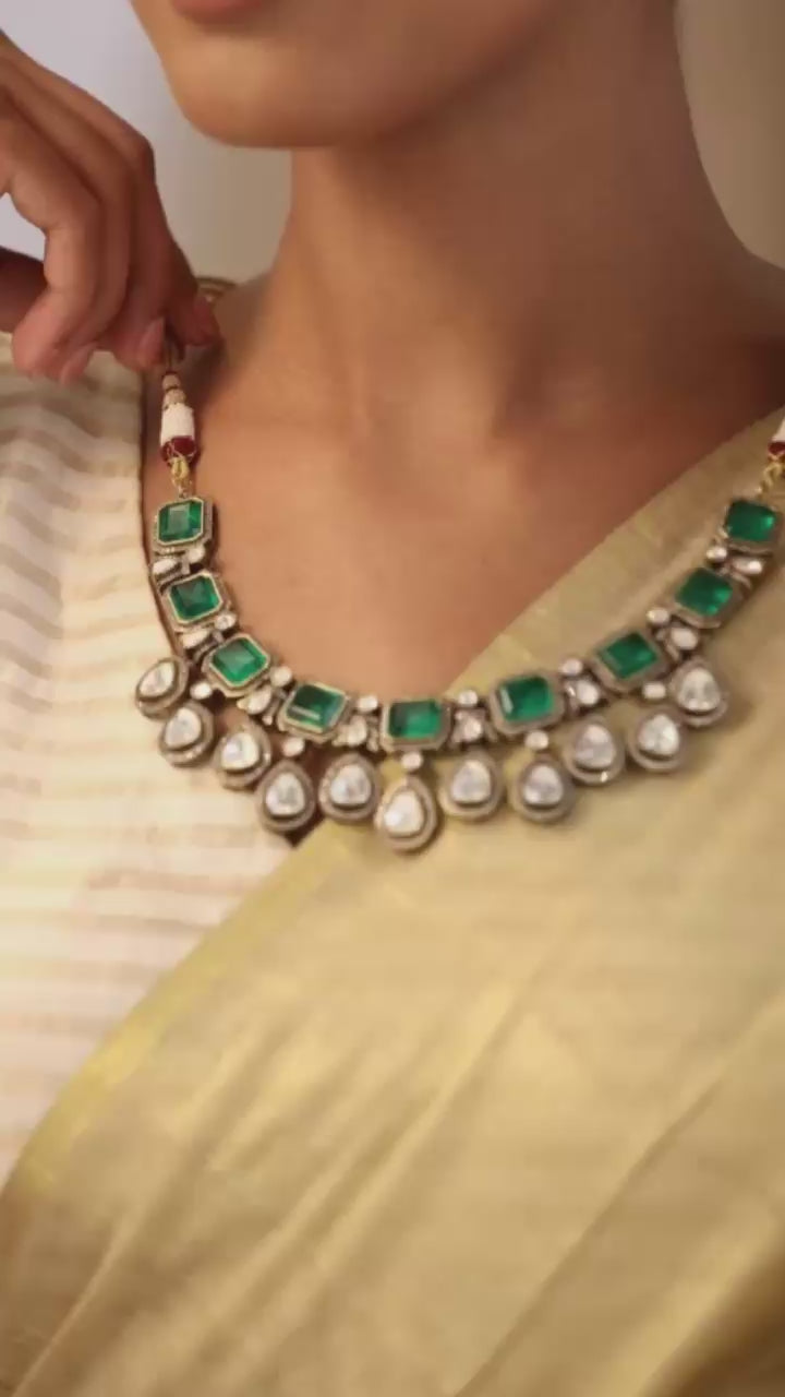 Maharani Emerald Polki Necklace Set with Ruby Accents