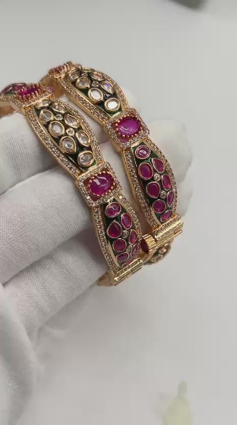 Real Kundan Gold Bangle PairReal Kundan Gold Bangle Pair