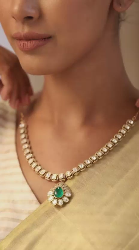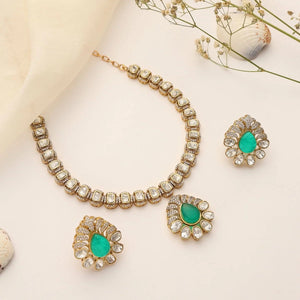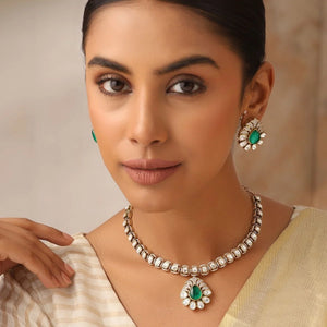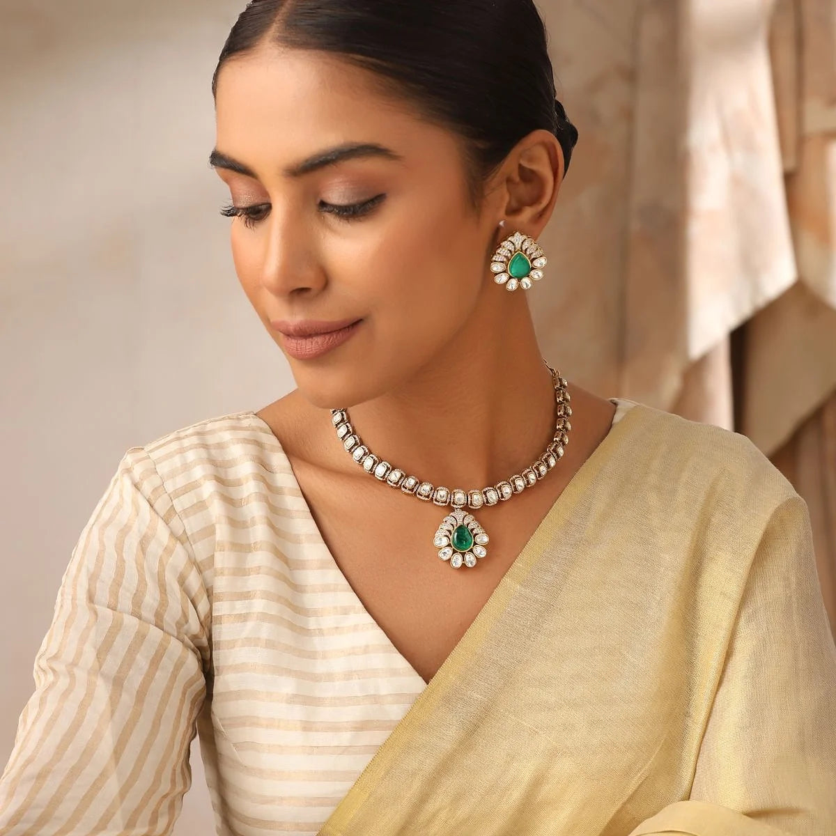 Aabroo – Emerald Polki Choker Necklace with Earrings