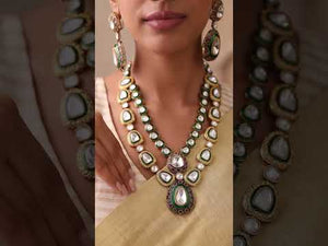 - Design: Double-layer traditional Kundan necklace set