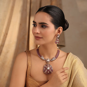 Aishwarya Ruby Polki Heritage Necklace Set with Earrings