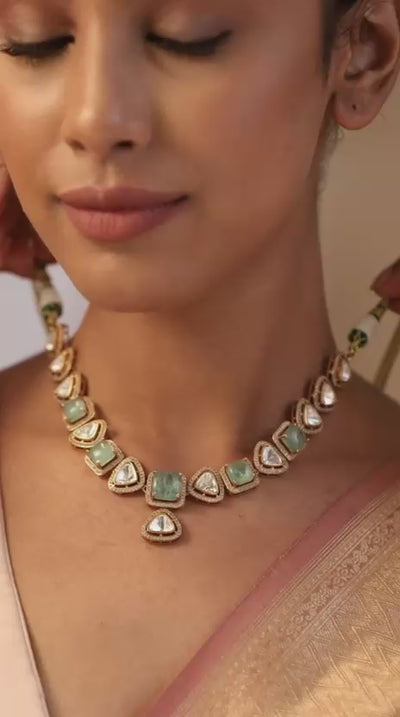 Amaira Mint Uncut Polki Choker Necklace Set with Earrings
