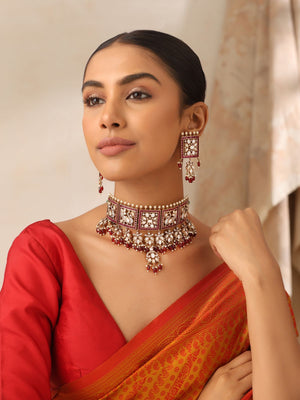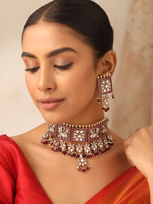 Antique Square Ruby Drop Choker Set with Kundan Stones