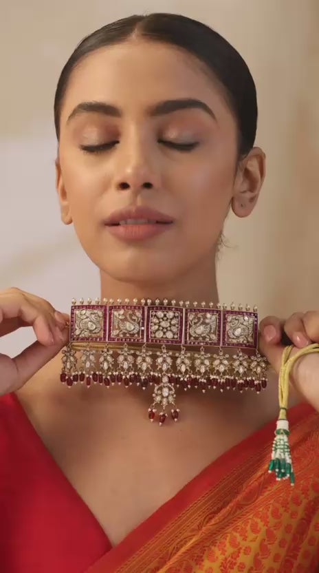 This stunning choker set is designed for women who love timeless antique jewelry with a regal charm.