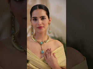 Aurelia Turquoise Gold Collar Set | Carved Stone Pendant & Earrings