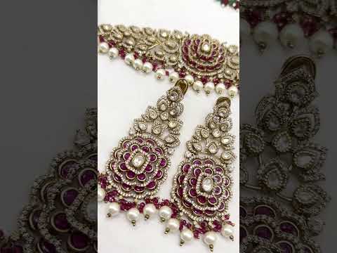 Azeera Pearl & Ruby Set is a heritage-inspired statement choker designed to bring instant royal elegance to your look. Featuring intricate polki-style detailing, rich ruby tones, and delicate pearl drops, this set frames the neckline beautifully and photographs like a dream.