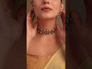 Eira Handmade Fusion Choker – Ruby & Emerald Statement Necklace with Earrings