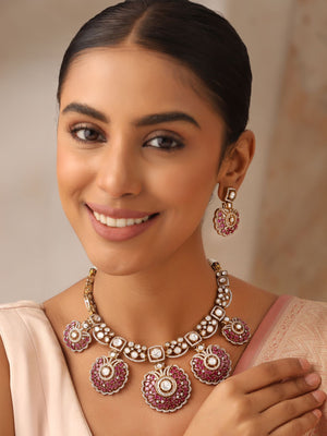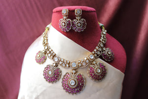 Elevate your elegance with the Elora Victorian Set, a timeless blend of vintage charm and regal sophistication. This exquisite set features a beautifully crafted necklace and matching earrings, adorned with a stunning combination of clear and rich red stones. The intricate Victorian-inspired design showcases ornate detailing, reminiscent of classic royal jewelry.