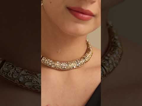 Perfect for those who appreciate traditional jewelry forms with practical versatility, this hasli complements sarees, ethnic ensembles, and fusion outfits beautifully. The structured design creates a bold neckline statement while remaining lightweight for extended wear at festivals, weddings, and cultural celebrations. Discover a piece that bridges ancestral jewelry traditions with today's styling needs, offering the golden collar aesthetic without heavy investment.