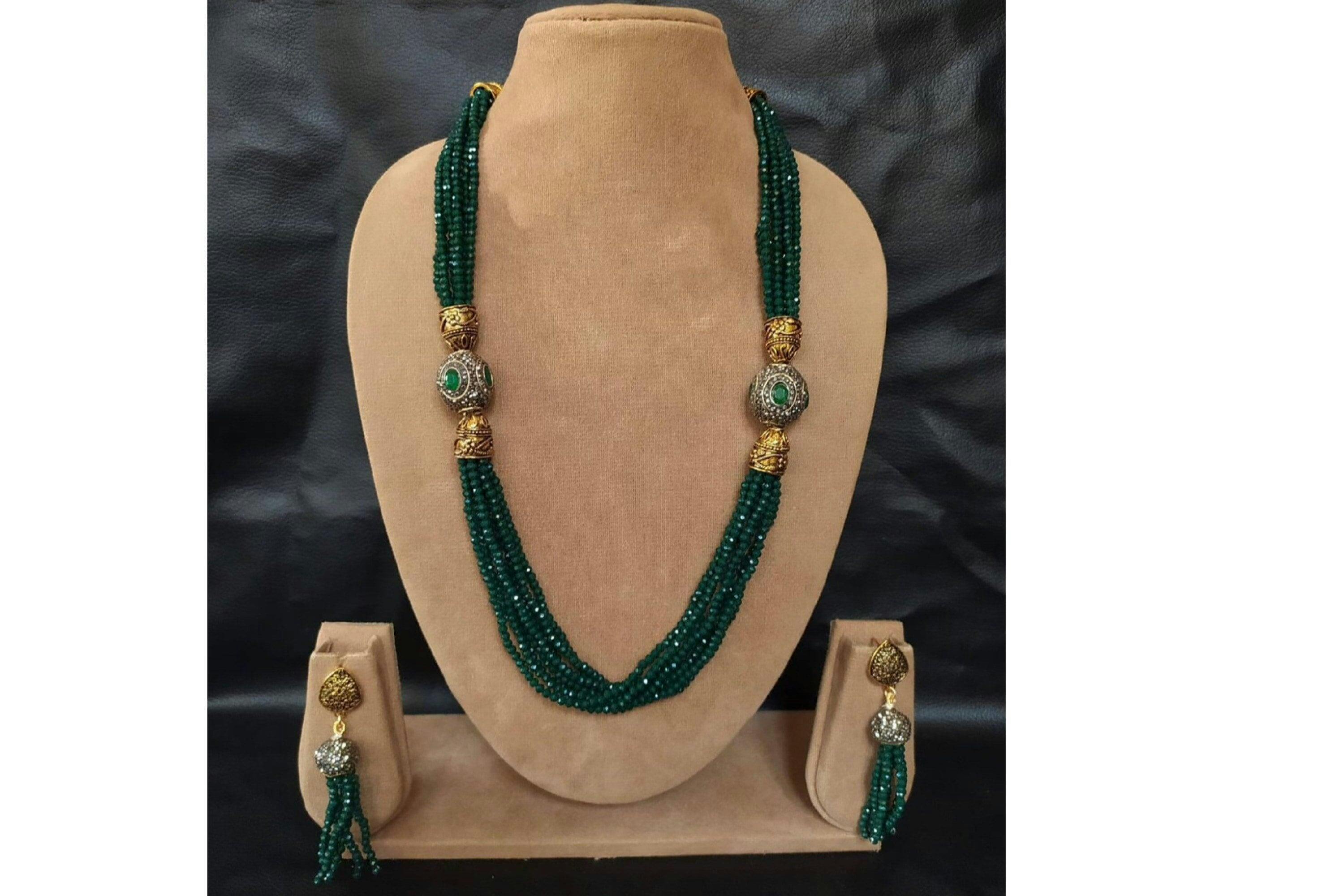 Fine quality Kundan and emerald green onyx semiprecious beads long necklace