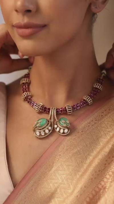 Gulbahar Mint Ruby Polki Necklace Set with Earrings
