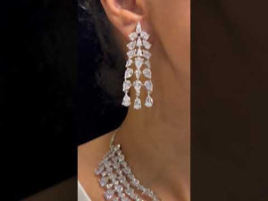 - They could be studs or dangle earrings, depending on the style of the set. If the earrings are dangle-style, they may feature multiple CZ stones that mirror the layered effect of the necklace.