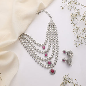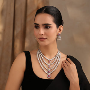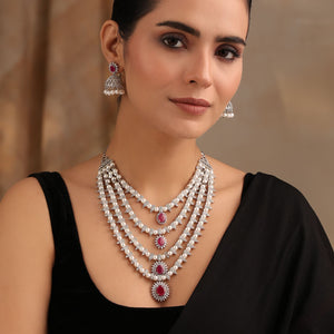 Elevate your elegance with the Ruby Pearl Layered Necklace Set.