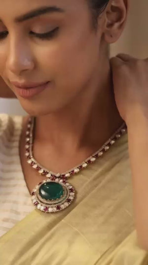 Maharani Emerald Polki Necklace Set with Ruby Accents