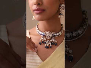 Style the Mehfil Meena Blue Hasli Set with sarees, lehengas, or anarkalis for a look that feels regal, graceful, and unforgettable.