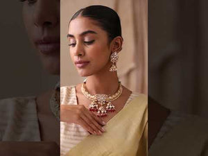 Style the Mehfil Meena Ruby Hasli Set with sarees, lehengas, or anarkalis for a look that feels regal, graceful, and unforgettable.