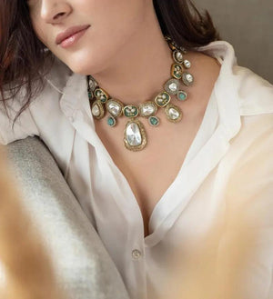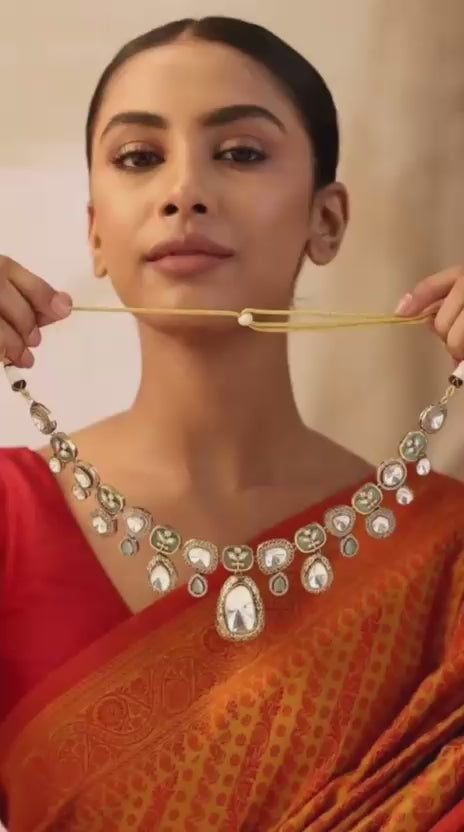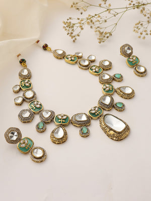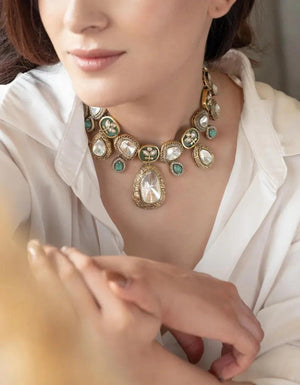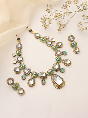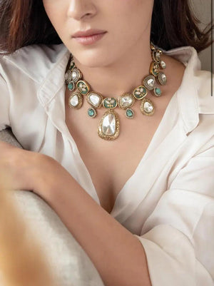 Handcrafted Mint Green Kundan Necklace with Polki & Meenakari Work