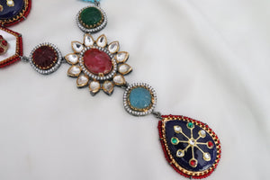 This versatile piece complements both traditional outfits like sarees and lehengas, as well as modern ensembles. Add a splash of color and timeless elegance to your collection with this one-of-a-kind jewelry set.