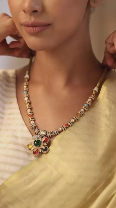 Navrang Multicolor Enamel Kundan Necklace Set with Earrings