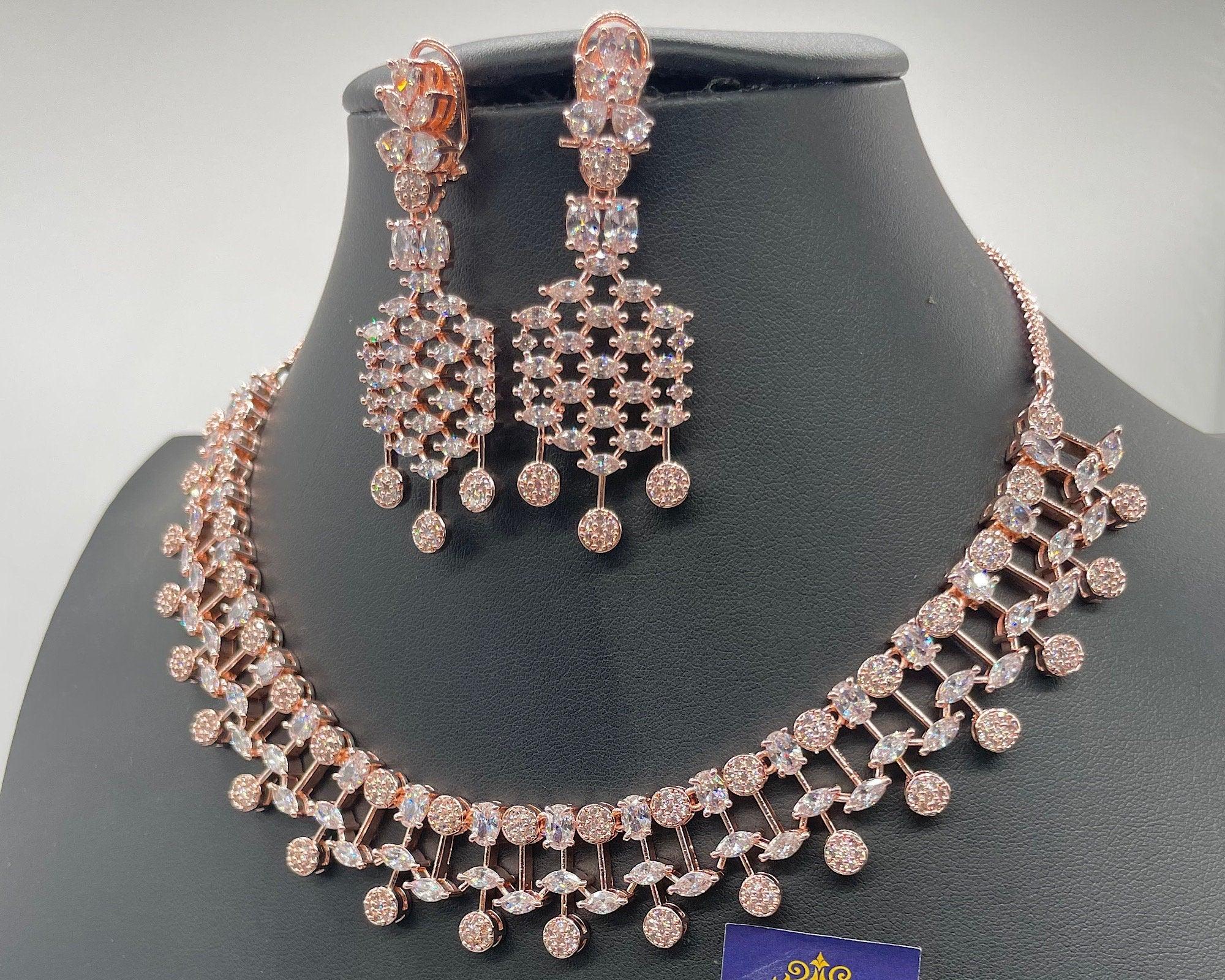 Very Pretty and Gorgeous white gold plated CZ necklace with matching earrings.