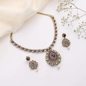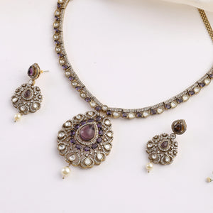 Nivara Purple Polki Kundan Necklace Set (With Earrings)