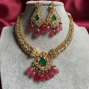- Handcrafted Polki necklace with matching earrings