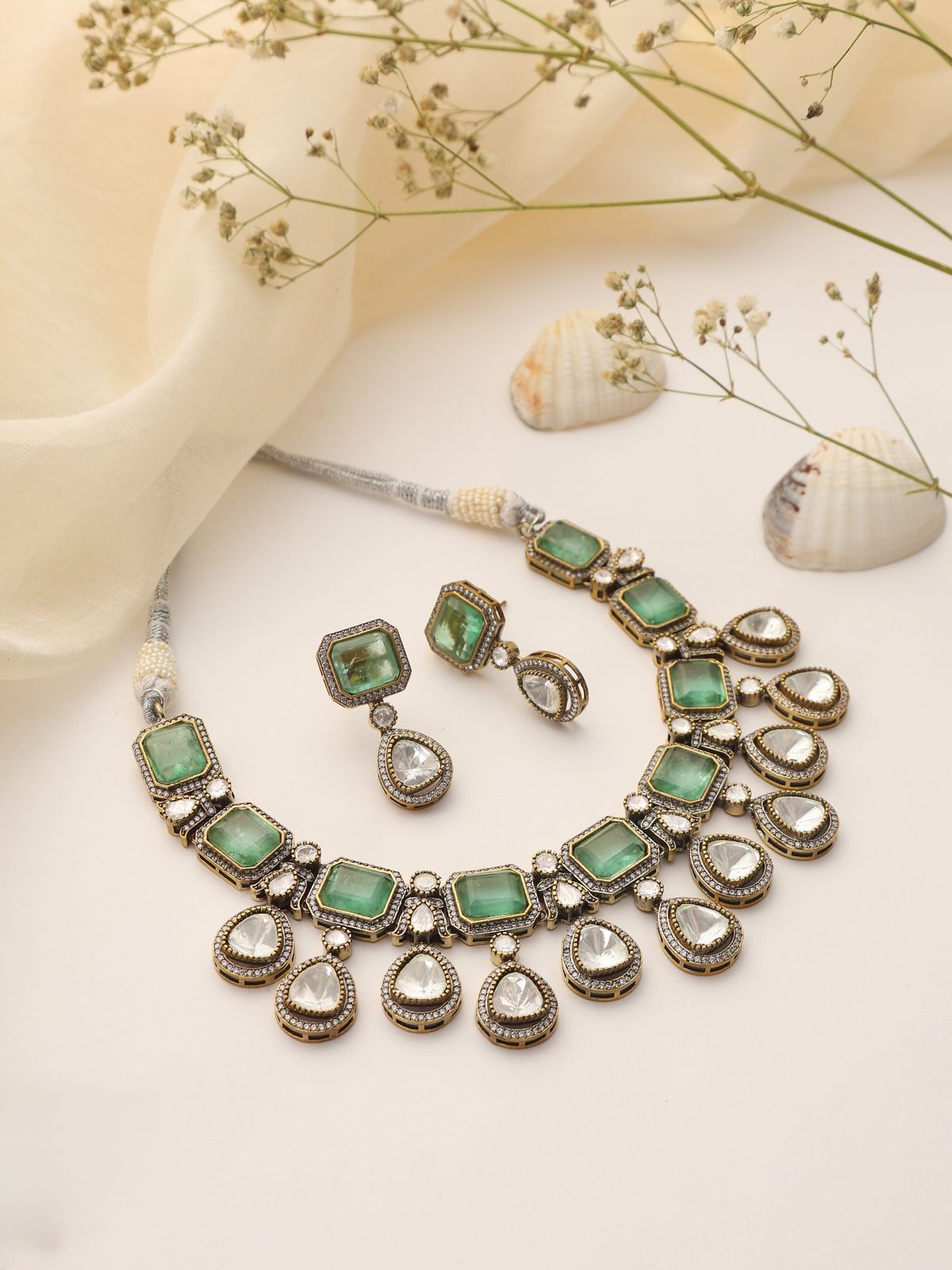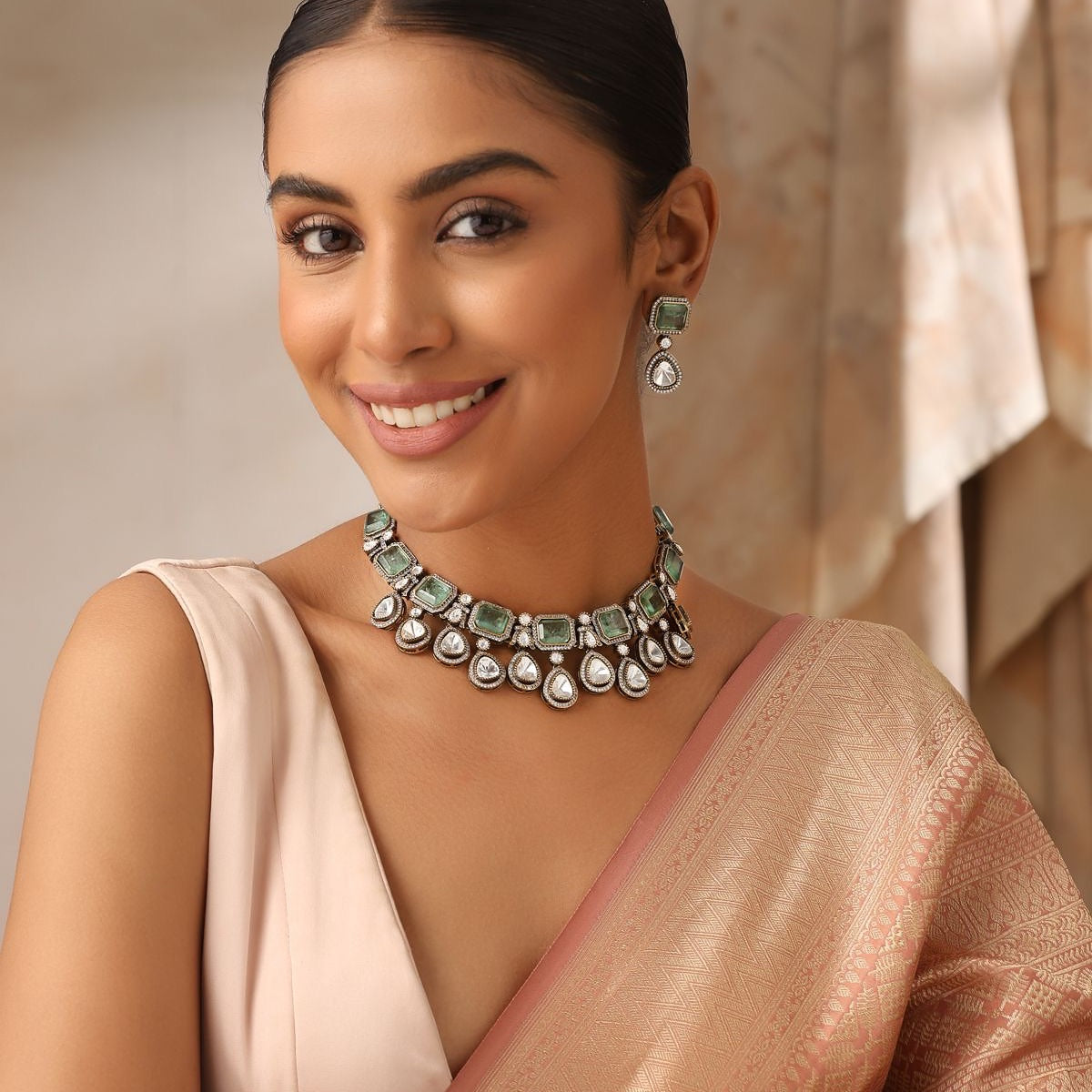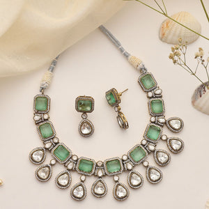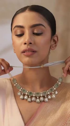 Noorani Mint Uncut Polki Necklace Set with Earrings