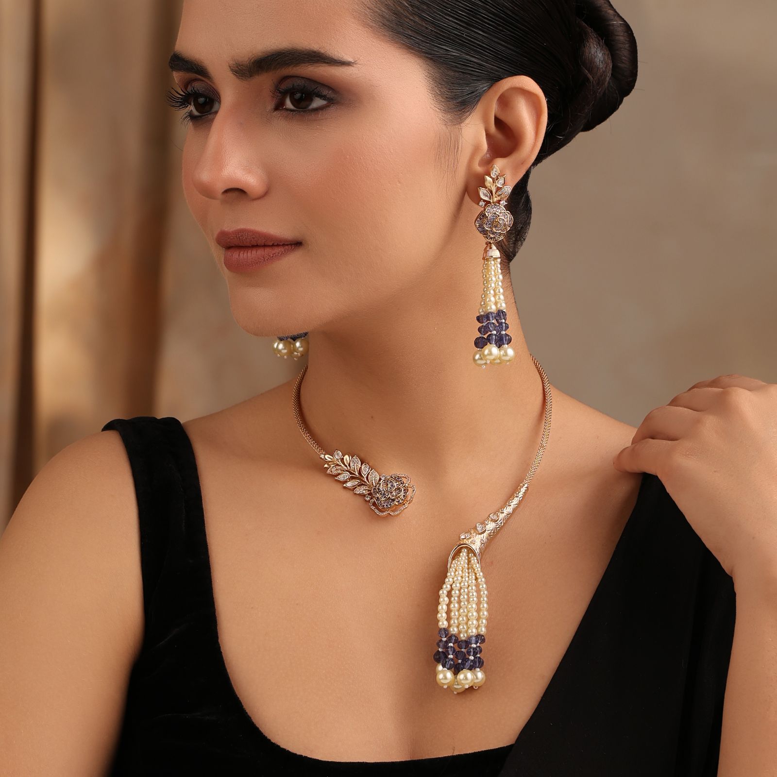 Styling Tip: Pair this set with a silk saree, lehenga, or gown for an effortlessly graceful look that radiates charm and elegance.