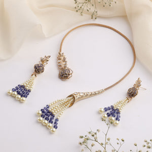Nure Purple Tassel Collar Rose Necklace Set with Earrings