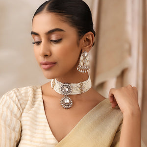 This pearl choker necklace set is designed for those who love effortless elegance and a refined, statement look without being overly heavy.
