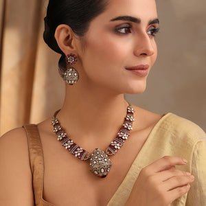 Rajvansh Ruby – Polki Necklace with Jhumka Earrings