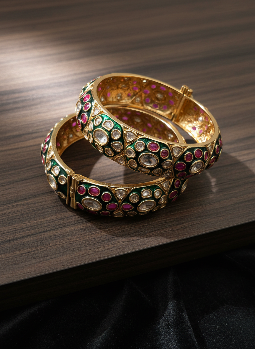 Styling Tip: Pair these bangles with bridal lehengas, sarees, or Indo-Western outfits to make a statement of royalty and sophistication.
