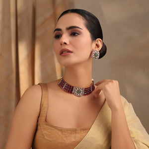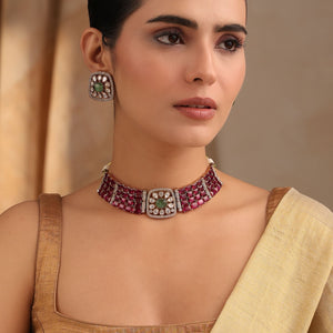 The Saanvi Choker Set brings together the best of color, craft, and culture. Its playful yet regal vibe makes it a versatile piece that complements both traditional and Indo-western outfits with ease.
