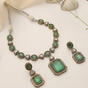 Sage Mint Uncut Polki Necklace Set with Earrings