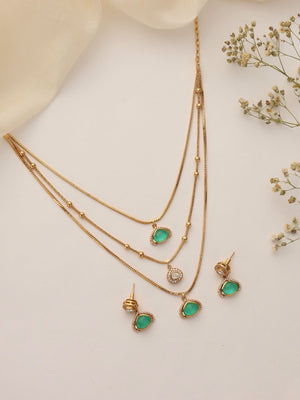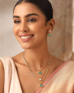 - π Delicate Layered Design β Features three dainty chains with emerald green and CZ stone pendants for an elegant layered look.
