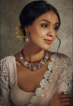 Very Pretty and Gorgeous Ruby CZ necklace with Baroque Pearls with matching earrings.