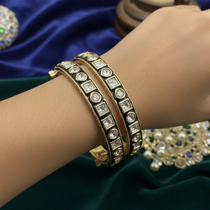These bangles combine traditional Polki artistry with elegant green enamel detailing, making them perfect for pairing with ethnic wear or fusion outfits to create a sophisticated statement look.