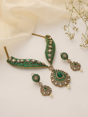 Vamika Green Mossonite Kundan Choker Necklace Set