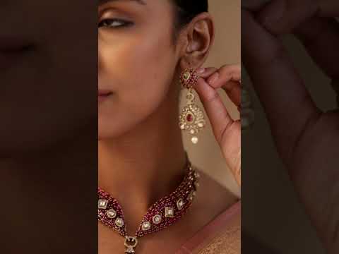 Turn heads with this exquisite ruby and moissanite choker necklace set,exclusive piece of indian jewelry, paired with elegant matching earrings. Designed for brides and special occasions, this handcrafted piece blends traditional Indian artistry with modern luxury.