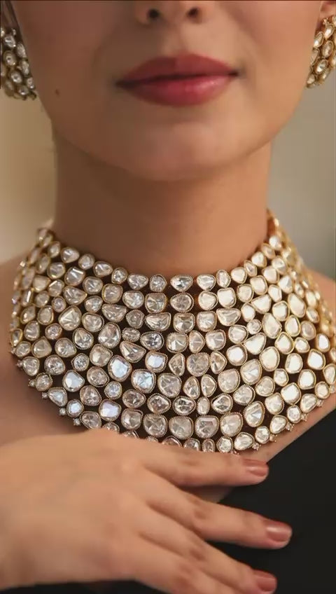 Add timeless charm to your collection with the Visha Kundan Choker — a classic piece that blends traditional craftsmanship with elegant design. This choker set features radiant kundan stones arranged in a bold, symmetrical pattern, enhanced with subtle pearl-like accents for a rich, royal finish. Perfect for weddings, festive occasions, or cultural celebrations, the Visha Choker pairs beautifully with lehengas, sarees, or fusion outfits — a must-have for those who love heritage-inspired jewelry with a modern twist.